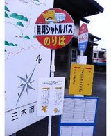 右は三木市コミュニティバス「みっきいバス」のポール。神姫バスの子会社が担当。今日みたいな土日祝は運休な由。